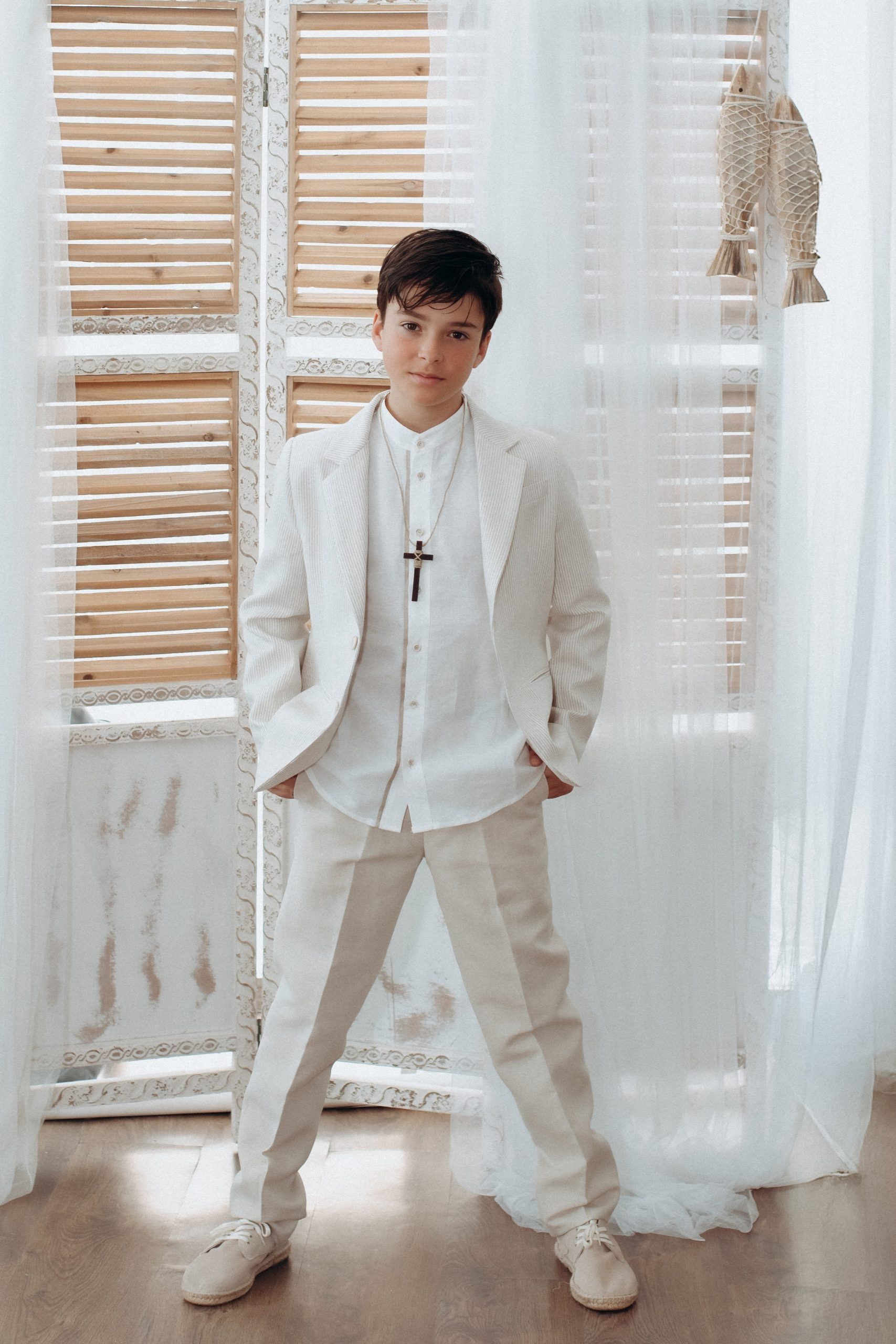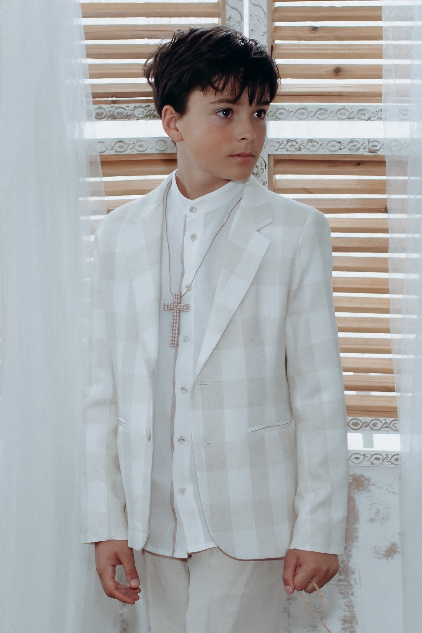 Diseñado para la Primera Comunión 2026, este conjunto destaca por sus líneas limpias, su corte impecable y su versatilidad. Perfecto para niños que quieren lucir elegantes con un toque actual, combina a la perfección con complementos como cruces, fajines o zapatos de lino y piel.